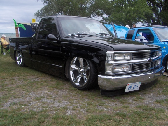 billet grille, smoothie front bumper, fiberglass tonneau cover, street vision mirriors, steel smoothie roll pan, shaved trim, antenna, tailgate & tonneau cover handles. plate frenched in gate. TYC tails, APC headlights and corners.