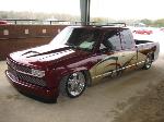 custom paint,caddy lights,shaved cargo light,stake pockets,antenna,ram airstyle hood,shaved corner lights,1/2 phantom billet grills,2 frenched antennas,molded roll pan and shaved tailgate,a big ole' 40x40 ragtop
