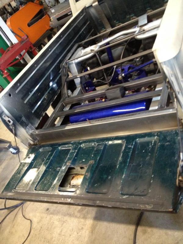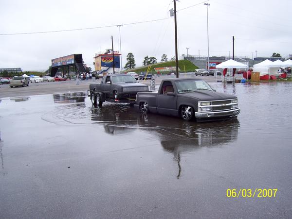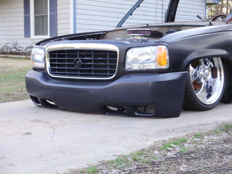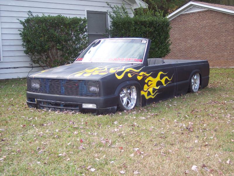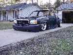 As of nov 08 the truck is setten at blockerboyscustoms in sc body is off the frame new frame with all new airride from suicidedoors.com added a wattslink airridetech control arms frame is being painted and supension parts powdercoated gona bolt up a new set of billet bonspeed 22s caddy clip is ready to go new paint with tribals new glass rino line the bed notch cover airbrushed dont know with what yet 8 6inch spikes to hold notch cover down some billet should be hitten up shows by first of next year when i get back from iraq will try and post some pics soon if you know where a good place to have the inside of the truck done around sc let me know