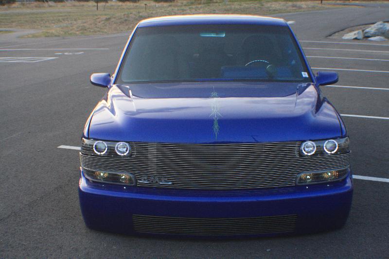 fully shaved, including tail gate, 88-93 Caddy tails, sheetmetal bed with hump, two tanks and a 15 gal fuel cell, 2&3/4" stock floor body drop, cowl hood, more bolt on shit,