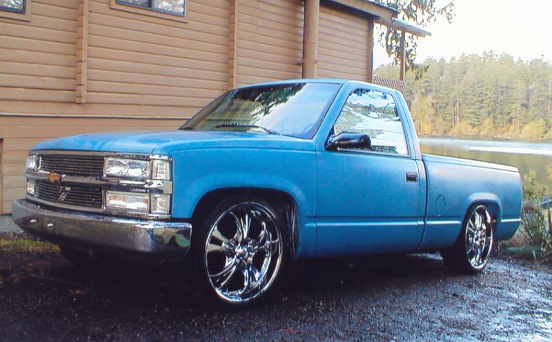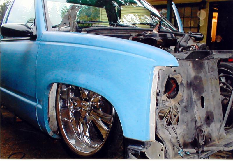 put in a v8 finish the bed body and paint fully painted interior new wheels put on my denali front clip