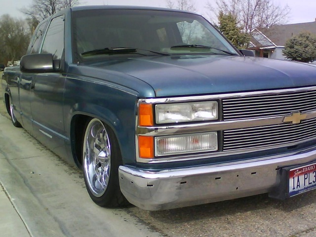 10" notch, Custom four link, 4 2600 Bags and 9 gallons of air storage. Built by ABS Customs.