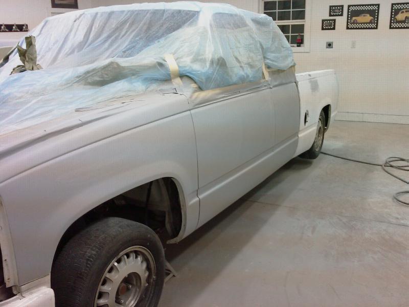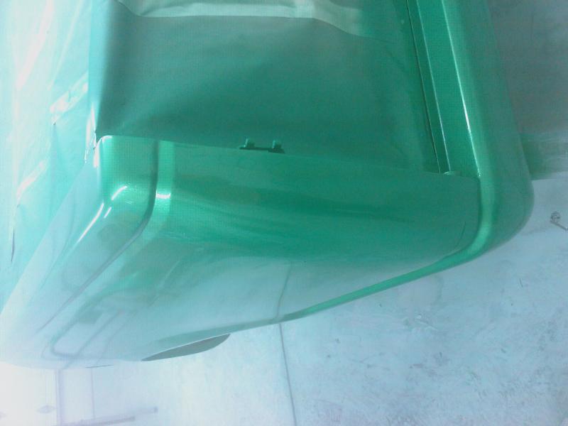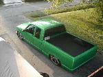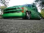 PPG electra green, with HOK grren ice pearl. Shaved clean with 15" led tails, Old school cowl hood. Blacked out phantom grill,