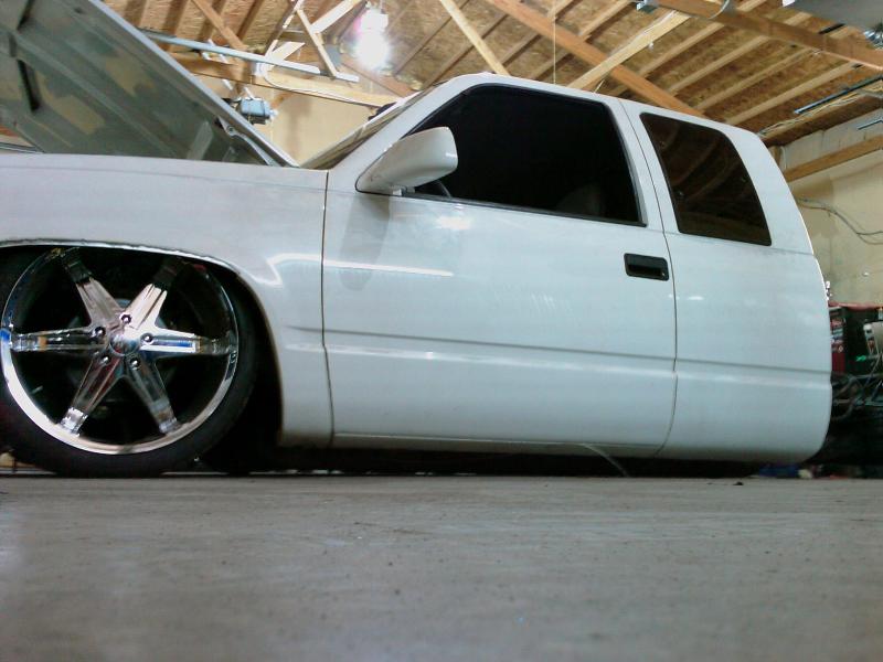 Bagged 1/2 valves slam all they way around. Wishbone link bag mounted on bar 18 gallon of air Layed cut and tubbed for 24"