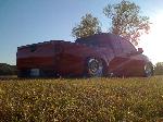 Red, Black, and silver with pinstriping, hood scoop, bed sheet metal and tubbed,