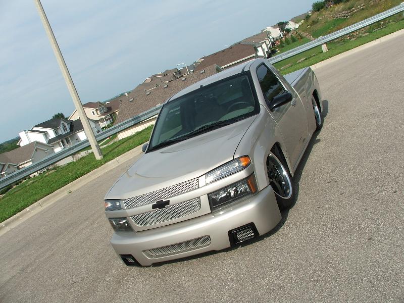 Street Scene Bumper, Grille and Bumper Inserts, Mirrors, Roll Pan, Checkmate Tonneau Cover, Painted to Match Handels, Canyon Conversion Front Clip Painted to Match, New Headlights, and Smoked TYC Tails.