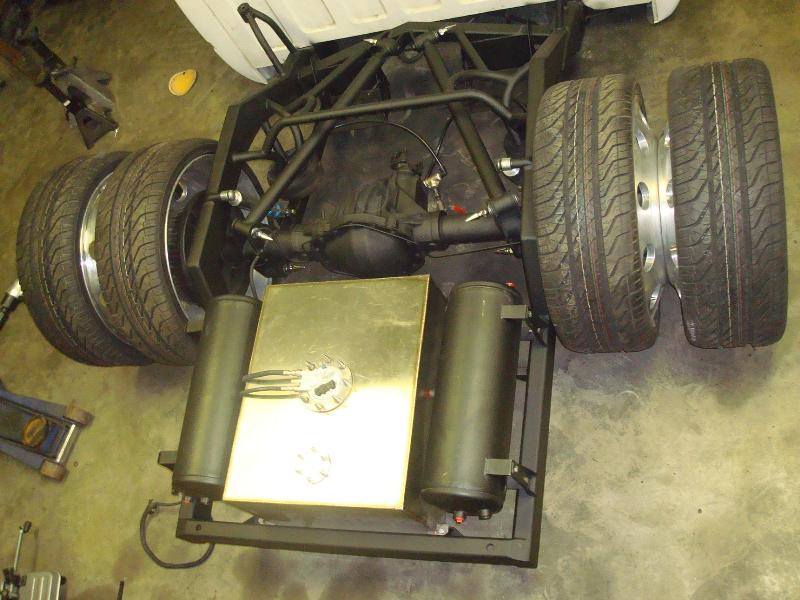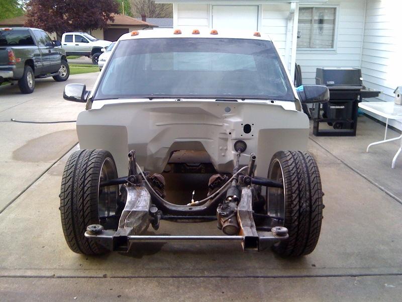 Devious A-arms, single wheel front hubs, back half, triangulated 4 link, narrowed axle, Slam RE-8"s, Bilstein shocks...more to come