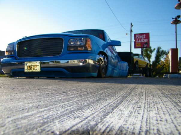 Slam XS7 bags all around, dual viair 480s, 8gal tank, 1/2'' parker valves, AVS gauges, all hydraulic airline, custom gooseneck bridge w/ 3D graphics