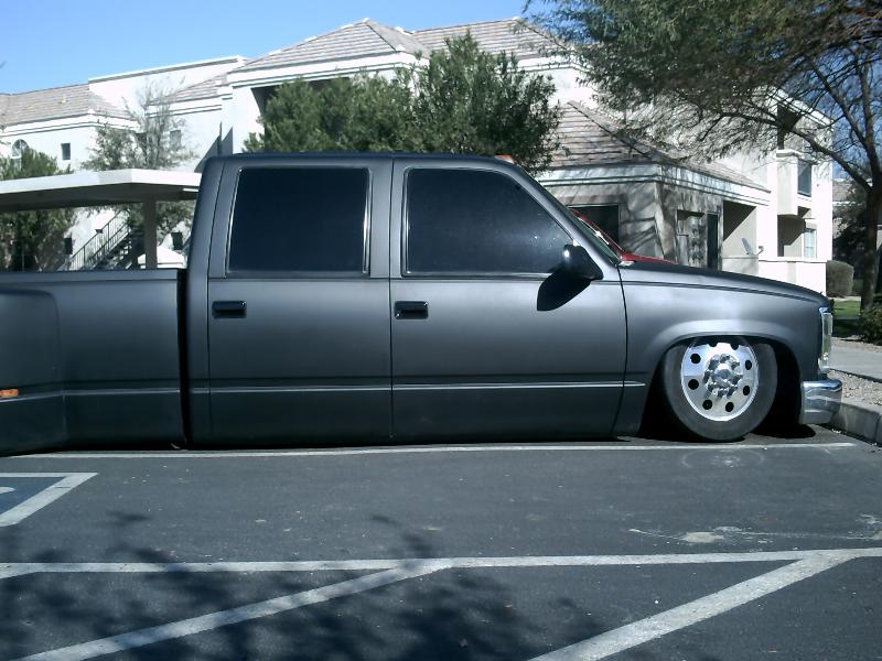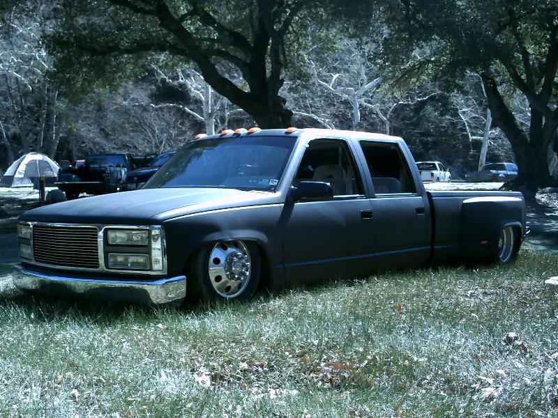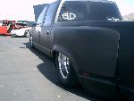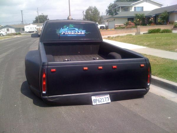 Projector head lights, billet grill, shaved tail lights replaced with catty tail's, relocated tail gate handle, stretched and raised rear fenders and 3" body drop.
