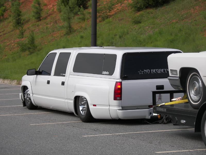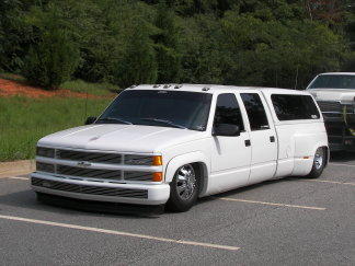 Stock paint/w custom pinstriping scroll on hood and tailgate. Few minor accesories. Billet grill, bumper, and emblem