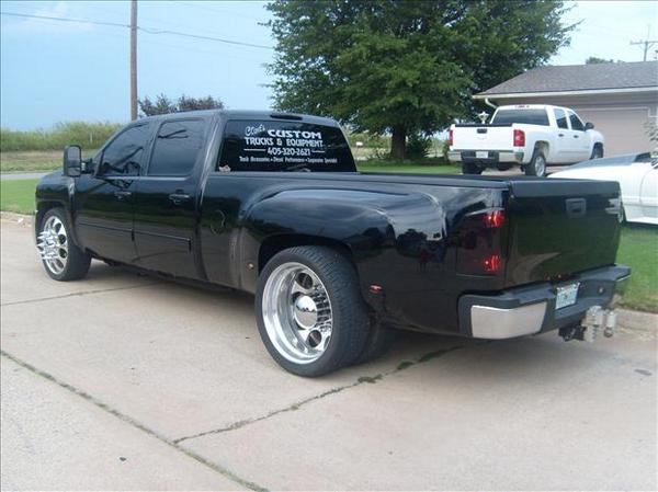 smoked lights, billet grille bowtie and antenna, spray-in liner, custom one off b&w gooseneck hitch, hid lights