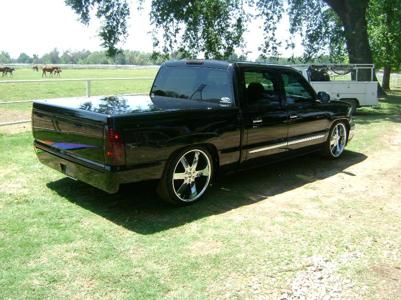 smoked led taillights ,third brake and front corners tinted plate and windows chrome mirror caps,caddy handles, snugtop cover powdercoated rotors and drums arctic white lights all in front and leds all around shaved tailgate,rollpan,gmc chrome side moldings capped off antenna,billet grille painted bow and bottom bumper