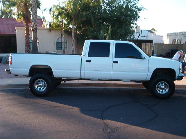 454, with fan clutch removed and electric fans installed. K&N filter kit, Mass air flow sensor installed. With Flowmaster exhaust dumping out right before the hitch to were you don't see it.