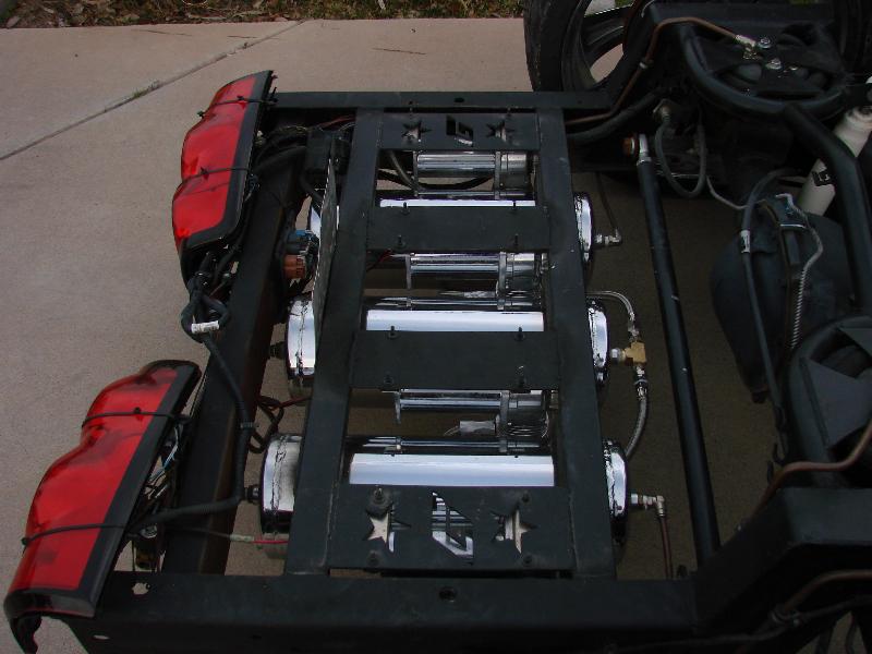 BAGGED, 4 VIAIR 420 COMPRESSORS AND 3-3 GALLON CHROME TANKS, 3/8" COPPER HARDLINE, 2 3/4" CHANNELED BODY DROP, 5 1/4" DROP ON THE BED