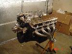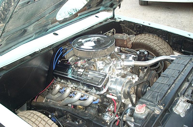 A slightly built big block Chevy with a Turbo 400 and a bunch of chrome and polished shit.