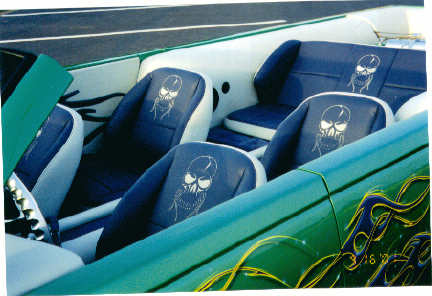 CUSTOM BY STITCHCRAFT (ANAHEIM,CA) MADE BUCKETS,DASH,DOOR PANELS,PODS,CONSOL ALL WRAPPED IN GRAY & PURPLE MARINE LEATHER