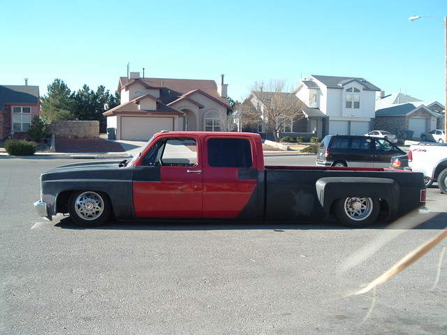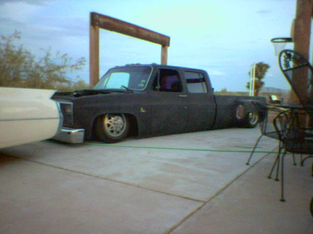 shaved back door handles, rain gutters, emblems and antenna, fender lights, and Front coner lights.Custom mirror. Front bumper moved 1 1/2 closer to body. phantom grille. 89-98 clear cab lights,and tailgate skin.