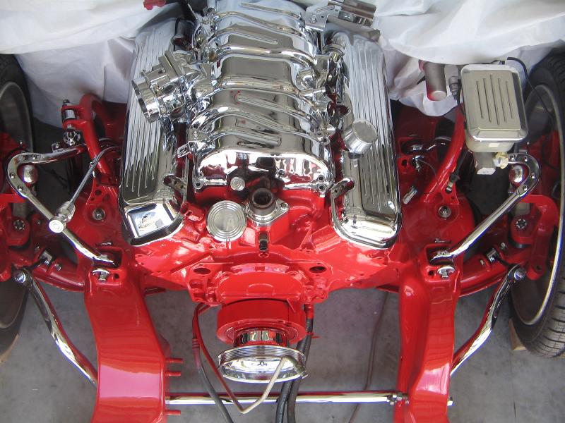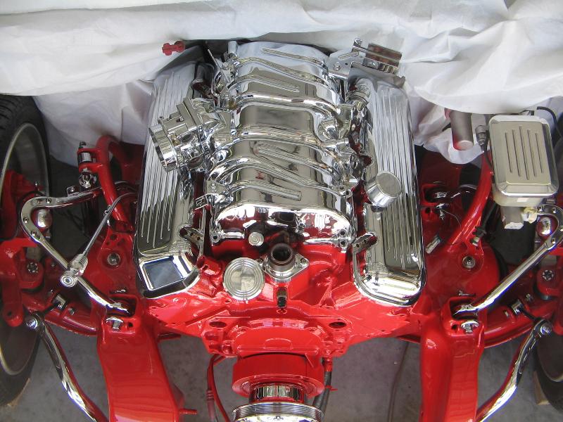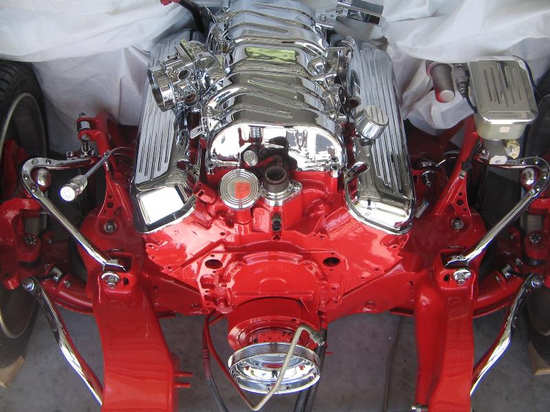 Big Block 454 7.4 vortec painted and smoothed block with all components chromed and powder coated with eddlebrock ceramic coated shorty headers and a lot of one off parts, all chrome done by chrome masters and Advanced Plating
