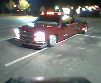 14 inch TFT screen molded into dash, two 5 inch headrest screens, 1 seven inch flip down, full fiberglass box and console painted to match the outside of truck, that runs from the front to back of truck, housing 4 M/A 12's. Replaced all mids and highs with M/A 6-1/2 and tweeters. Rplaced amps with a 1800 watt Monoblock MA for subs, and a 800 watt 4 channel MA for mids and highs. Blaupunkt DVD player, and PS2. Panisonic CD Player and an adjustable crossover. Have also wired the alarm to roll widows up and down, raise truck up and down, turn neons on and off, and remote start.