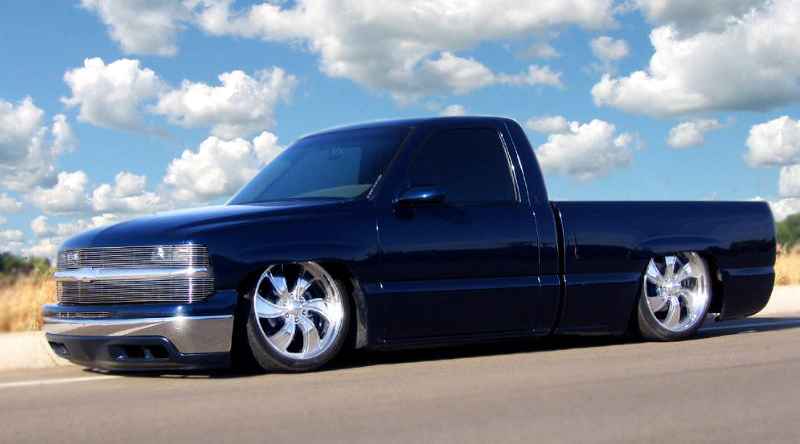 CHROME KRZ CUSTOMS 4 link, Slam Specialties HS bags, 1/2 inch lines,F.B.S.S. PANCAKE. KRZ CUSTOMS CHROME upper and lower control arms. Raised gas tank, KRZ crossmember, Blue Powdercoated brake calipers, spindles and rotors!