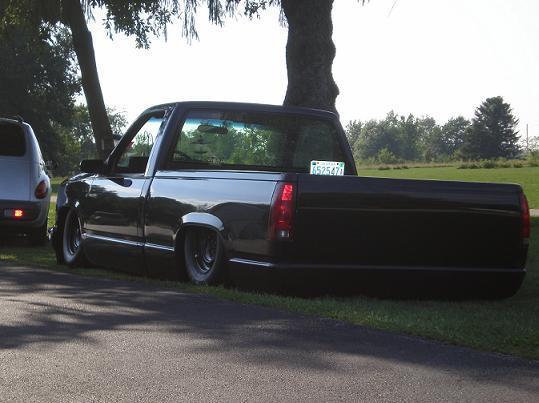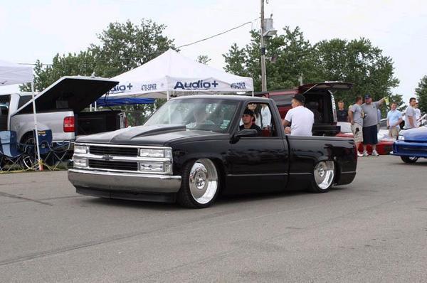 98 grill, smooth front bumper, goodmark cowl hood, Shaved: antenna, door handles, bed rail holes, gas door, tailgate handle, and rollpan. In the bed i had suicidedoors tub with a line-x bed liner. Body work and paint all done by me.