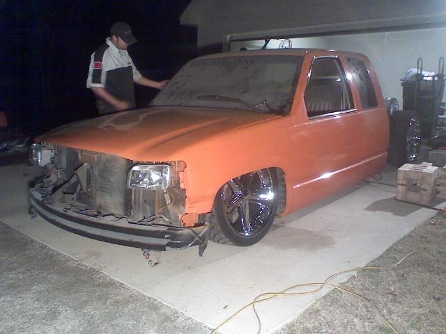Escalade front clip, deville tail lights shaved mirrors, door handles,3rd brake light,smooth roll pan, and angled tag in tailgate.