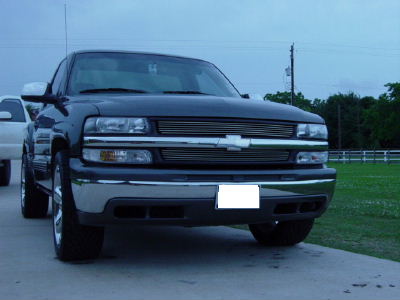 billet grill, clear lenses, billet bowtie, painted doorhandles/tailgate handle and valence, roll pan, all emblems and side moldings are off