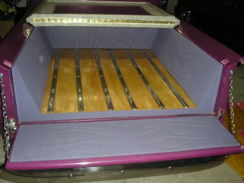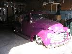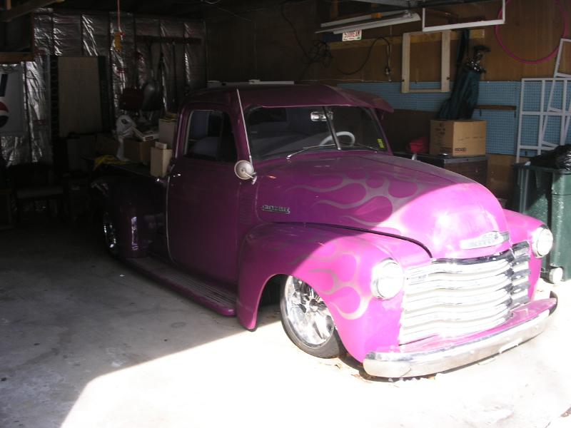 Purple w/ silver flames, chrome grille shaved tailgate