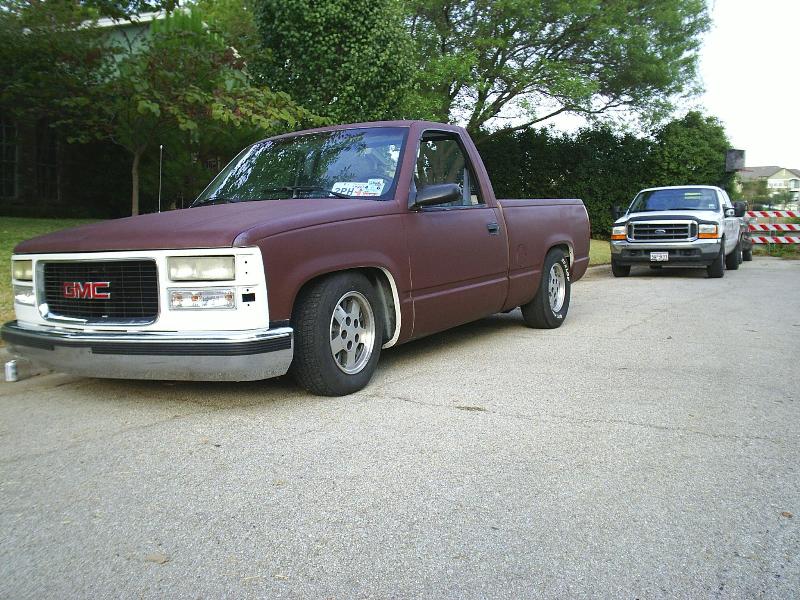 shit brown primer shaved stake pockets and ass end is all shaved about to be all nice and white