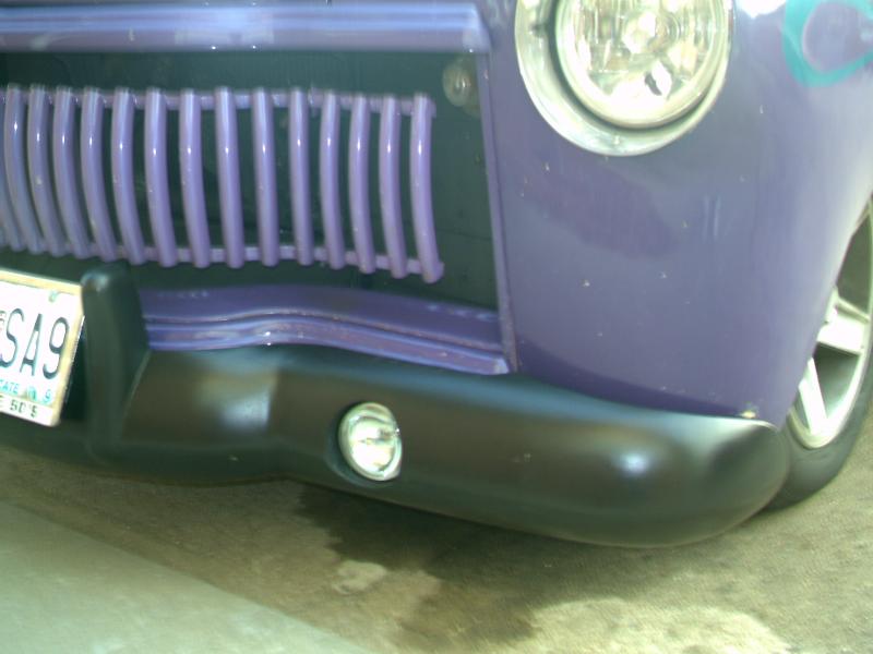 3" top chop, shaved door handles, custom grill, removed wing windows, etc. paint- turquoise with purple flames, custom front bumper built from a 1956 straight bumper