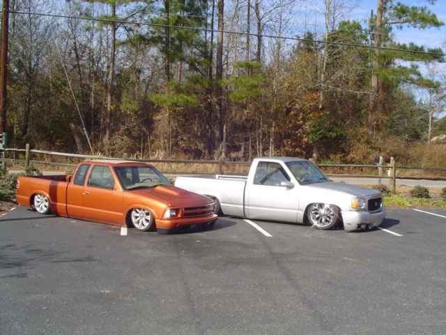 Fully shaved: gas door, stake pockets, taillights, handles, antenna, tailgate handle, and rollpan. Caddy lights out back. Escalade front end swap.