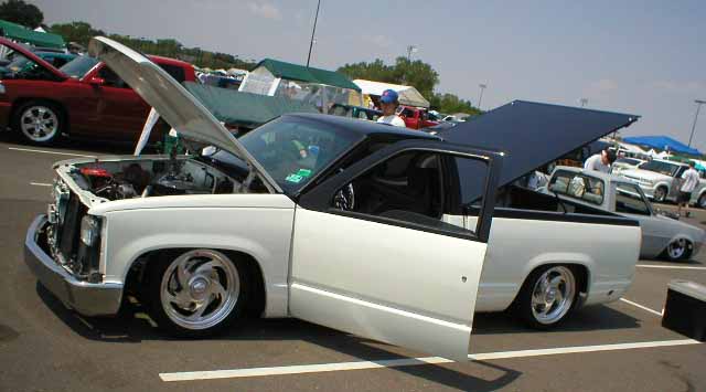 shaved drip rails,door handels,tail lights,roolpan,tail gate latch,stake pockets,mirrors,third brake light,emblims, chopped top 3 inch, toyta peral flat black on top pant,