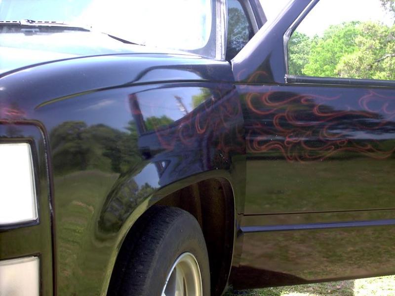 In process:ppg black w/blue pearl HOK candyapple red,ppg silver graphics. Fully shaved.Either escalade front clip or yukon front clip.Smoothed out bed floor