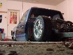 Out for the body drop, but will be kept mostly stock. B.A.D. Wraith full billet wheel. 3 Viair guages on the pillar.