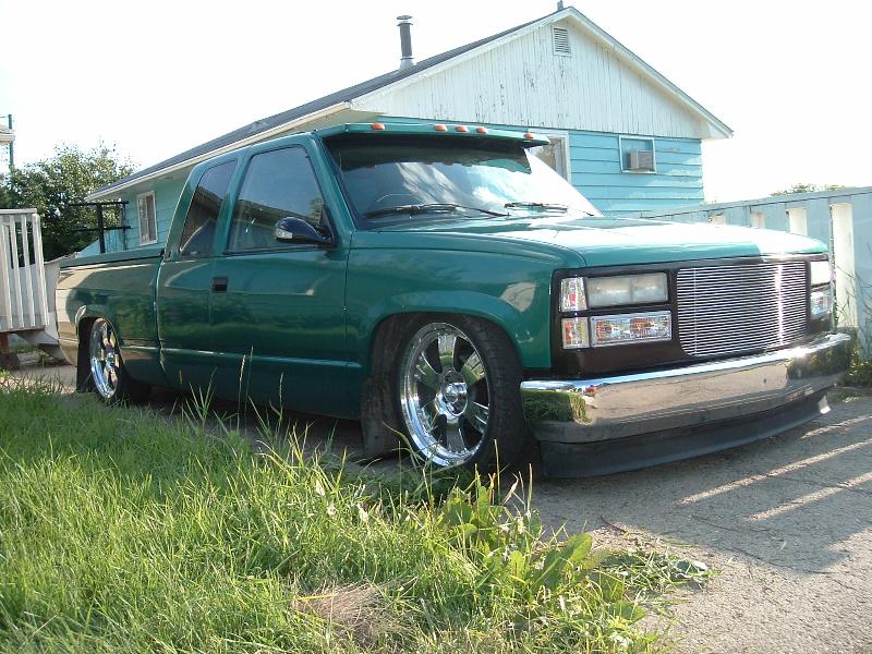 98 GMC front clip w/Trenz billet grill,clear corners and markers,Shaved: door handles, mirrors, tail lights, tail gate handle,frenched license plate, molded in steel roll pan, lame visor