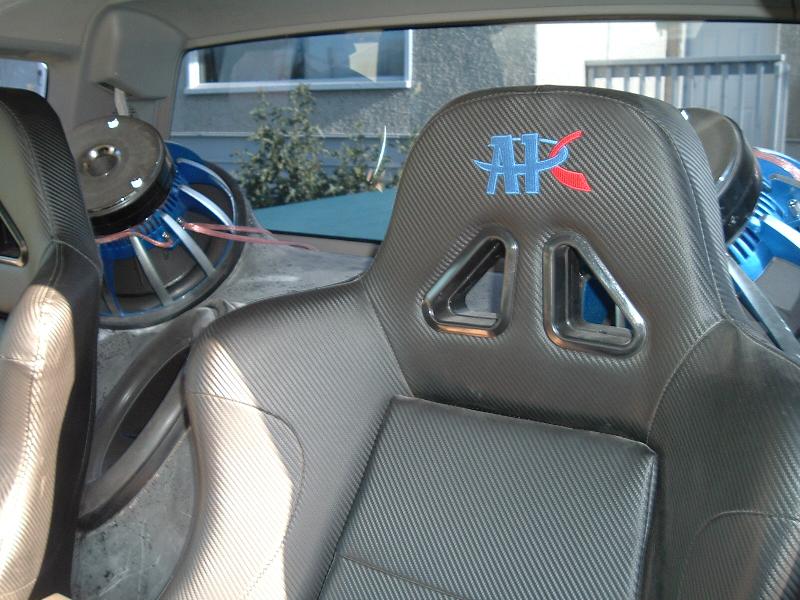 APC Racing seats, custom built fiberglass dash, custom fiberglass woofer enclosure