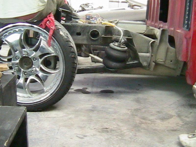 The suspension Is being reworked by me at Outlandish Creations The suspinsion pics above are of the messups that a shop in alvin Tx did I won't name names But u can see what I'm dealing with,the top 4 are pics Of the new suspension, It is a 3 link and the air struts will stay up front (I don't like it but the customer is all wayes right) all new air lines