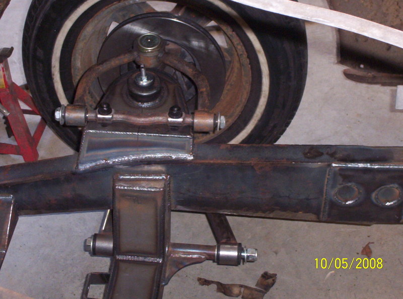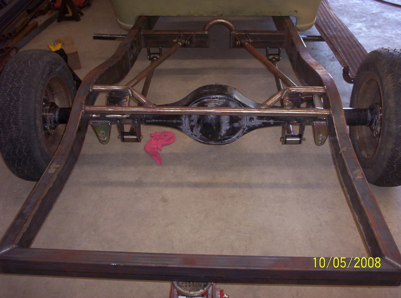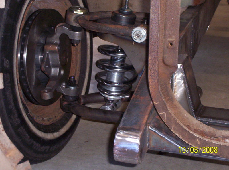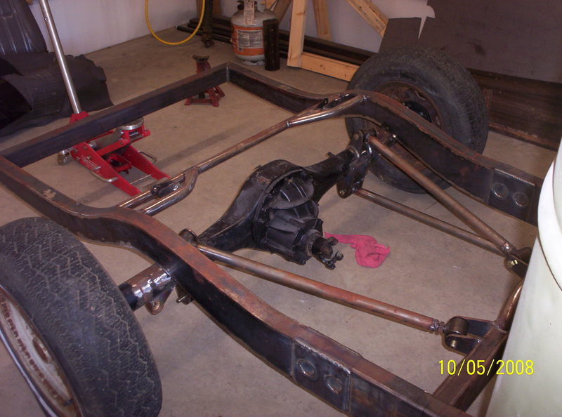 Full frame, coil overs, and mustang II front suspension. 9in ford rearend, Suicide doors 4-Link. All frame work done by Hooies Fab Shop.