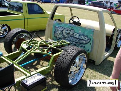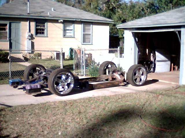 all hand built tubular bridge and 9" notch, reverse 4-link, tubular lower controlarms, custom bag mounts, custom shock mounts, all nhand built crossmembers, airlift 2600 bags all around, hydrolic lines