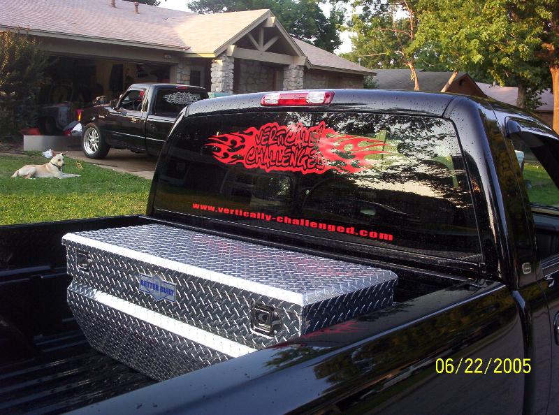 Red racing strips roll pan cut out for exhaust with a spoiler
