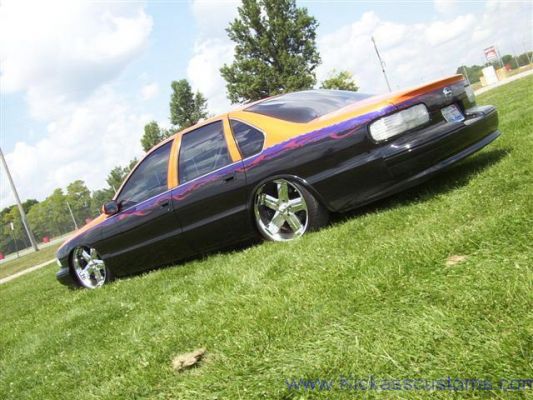 House of Kolor Tangelo Pearl and Black Two-Toned. Airbrushing on 2" Glasstek Hood, Clear Tail Lights.