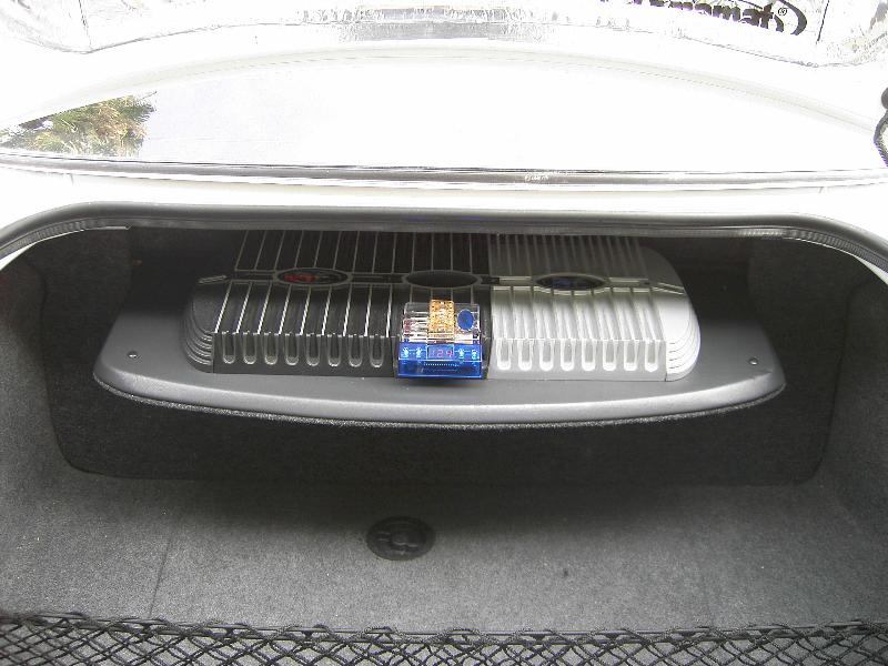 7 inch in dash pioneer dvd/cd, FOCAL front door speakers, PIONEER 3 way 6x9's in back deck lid, motorized amp rack, ROCKFORD FOSGATE 500xp, RF 500S AMPS, 2 KICKER COMP VR 12'S, DYNOMATE throught the car.