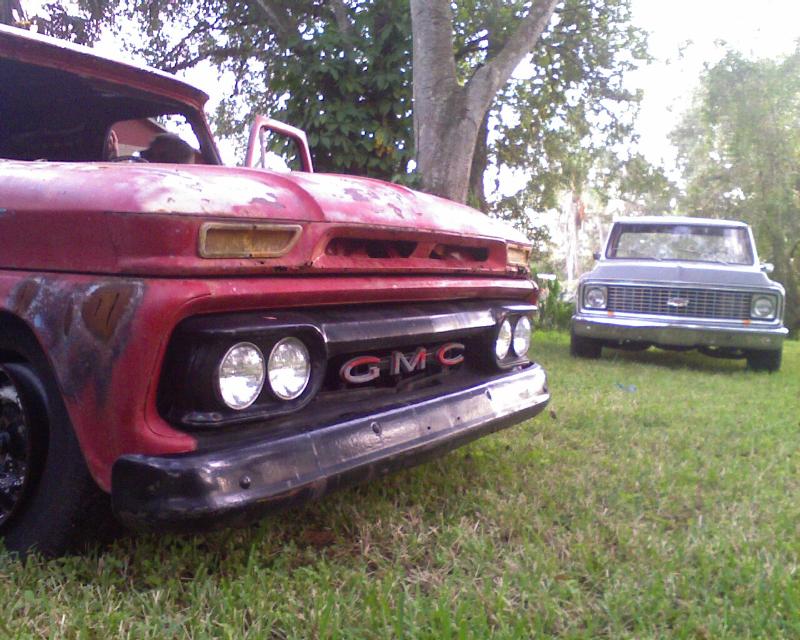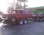 Keep orinal rusty paint, big block of some sort, tranny 4 speed of some sort, orignal wheels painted, white walls, z the front and notch and monoleaf the rear to make it 2" off the ground just static. No bags!!! I'm sure there will be old kegs and old signs involved on the inside. Who knows!