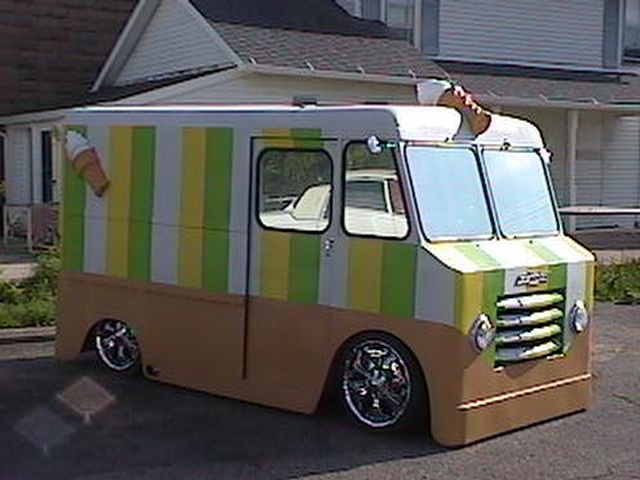 repaint and welting ice cream to roof and waffle cone the tan at bottom and may add 22" or 24" rims.
