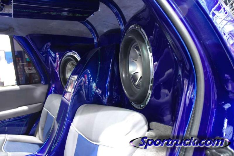 alpine double din, 6 12" earthquake subzeros, 6 6", 2 5.25 mids 17,000 watts in amps and 4 2.5 farad caps