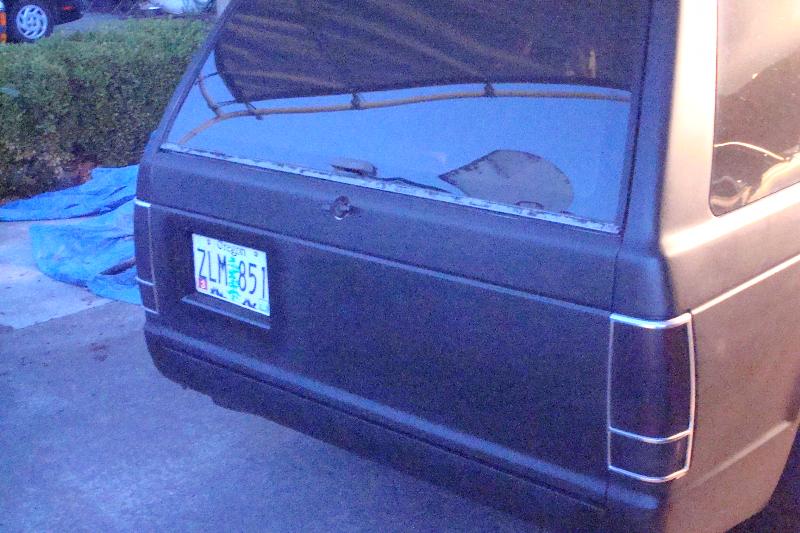 SHAVED:door handles,emblems,roof rack,and antenna. ADDED:full primer,rollpan,billet grille,license plate box, and 15%tint.