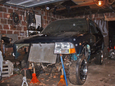 body sits on adjustable 8inch cylinders and f9000 air bags. body can lift 8 inchs off the frame. what???? haha