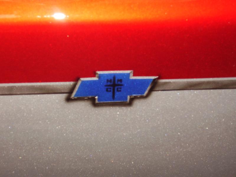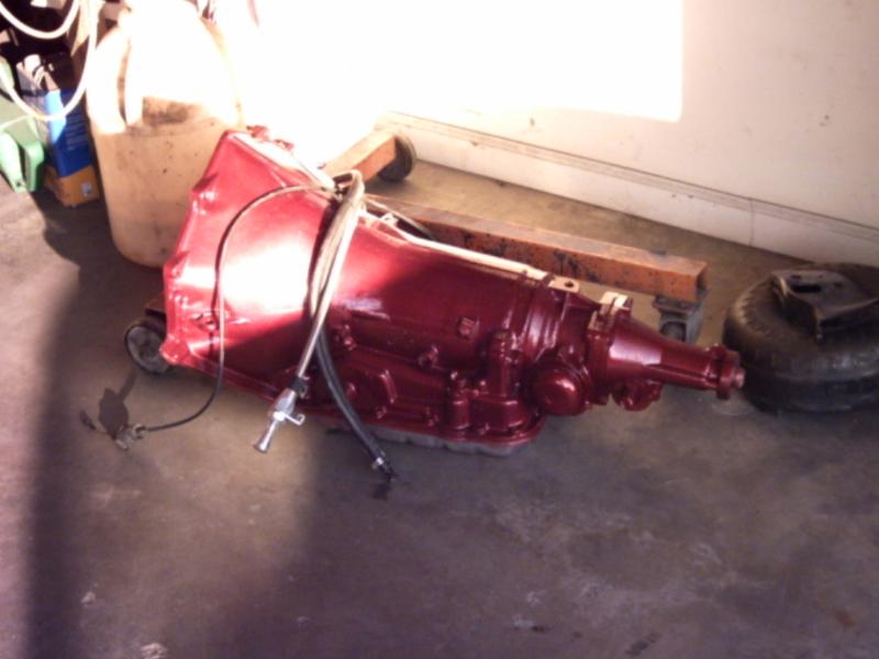 Crate 350 with 700r4 tranny. lokar shifter. some dress up stuff. Pete Jackson gear drive. Holley fuel pressure regulator. Edelbrock Aluminum Intake. Ceramic Coated Headers, 2 1/2" exhaust with Flowmasters. Engine block and transmssion painted candy red. Billet valve covers painted silver and candy red to match paint scheme. American Autowire wiring harness. Lokar Throttle Cable, Kickdown Cable, Engine Dipstick and Throttle Cable Mounting Bracket w/Return Springs. Lokar Speedometer Cable. MBM Master, and MBM 7" Dual Diaphram Booster. All stainless brake line. Billet Specialties Overflow Tank. Billet Wire Looms. All paint work done by Donny Schreiner at MaxxMuscle Custom Cycle Painting.