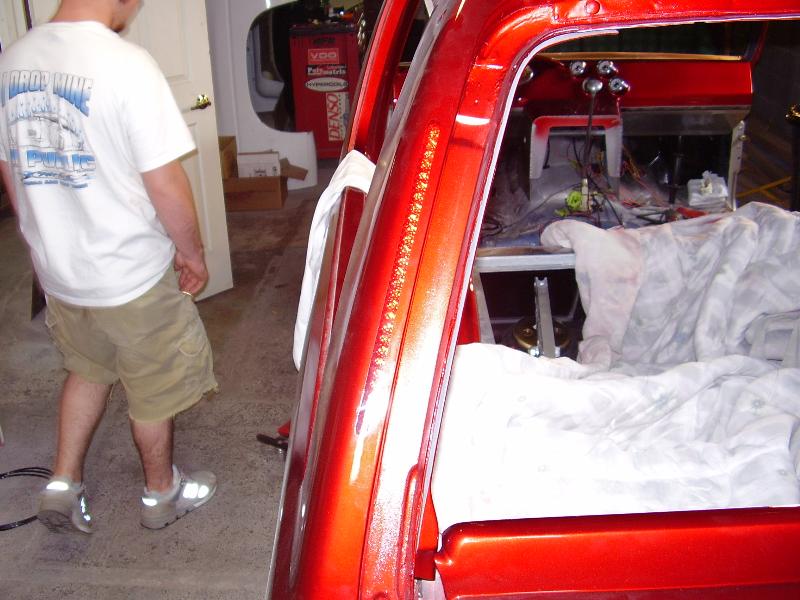 Shaved everything. L.E.D.s in the C-pillar. suicide doors. custom made wiper cowl. Full phantom grill. Triple Chrome Bumper. doors done by sean @ seriously insane auto concepts. All paint work done by Donny Schreiner at MaxxMuscle Custom Cycle Painting.