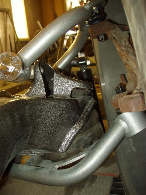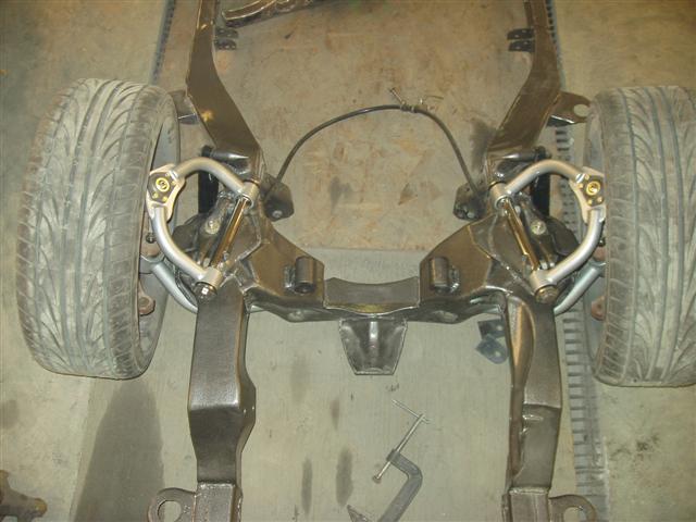 2x3 3/16 wall frame from firewall back for SFBD. Powedercoat Primer, Silver Vein and Clear Coat. Tri 4 link with bags on the lower bars. RE7s all around. Thorbecke Bros (suicidedoors.com) Control Arms